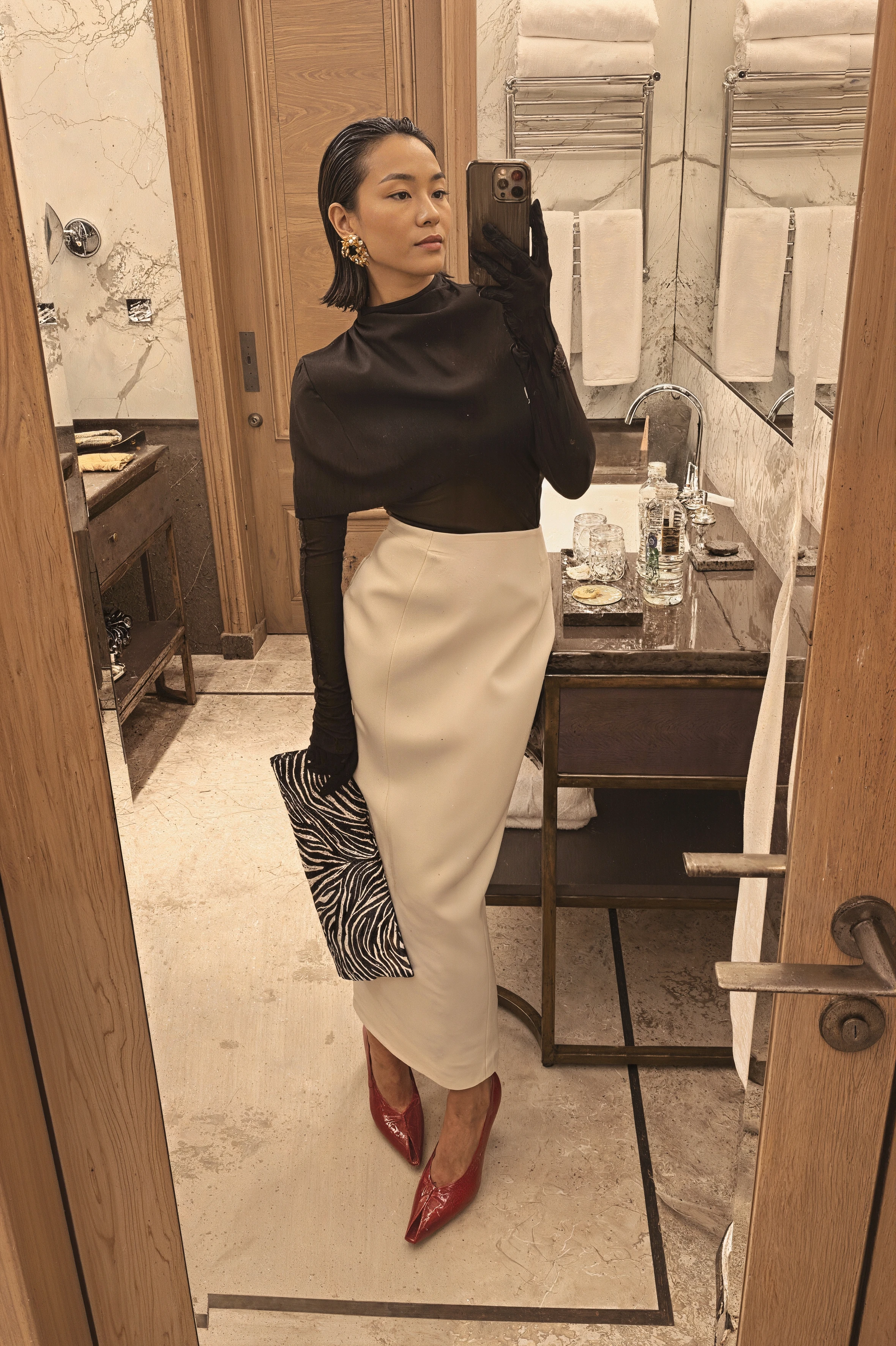 A refined exploration of monochrome dressing, where a single hue anchors the look and nuance takes precedence. Precision tailoring, tactile fabrics, and sculpted proportions create a quiet yet commanding visual language.